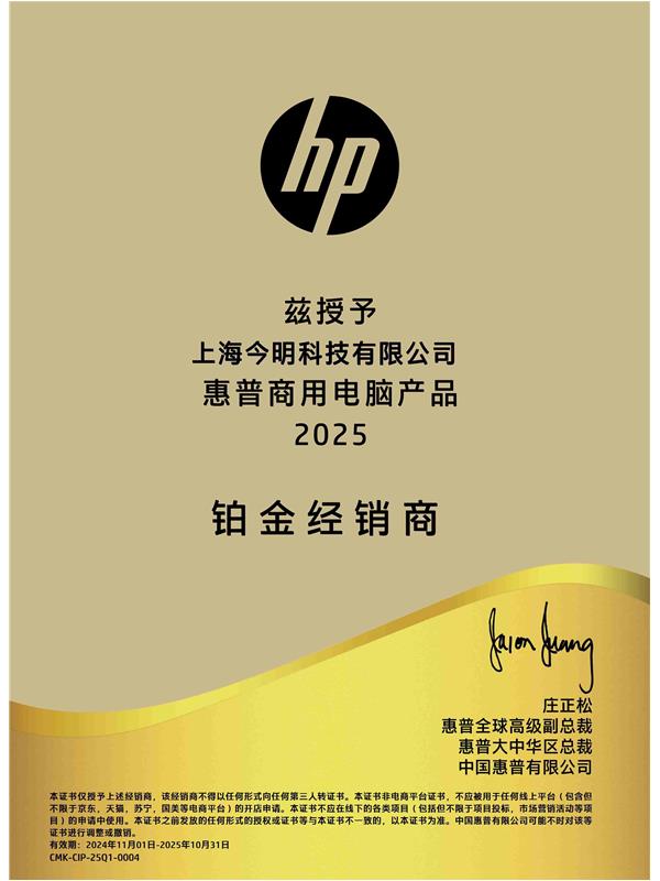 • 惠普商用電腦產(chǎn)品2025鉑金經(jīng)銷商
